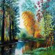 Title "Birch Trees Landscape" - 100 % hand painted by artist Liliy Ganzha
