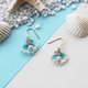 【贝壳珍珠耳环】 水蓝色 手工贝壳造型 天然淡水珍珠 耳环/耳夹 - 耳环/耳夹 - 树脂 蓝色