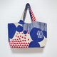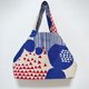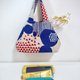 选用日本进口印花棉布,里布搭配几何图形或素面棉布,做成简单小巧手提两用托特包,袋口两边附加羊毛毡球蜡绳,内装物较少时可以打结缩小袋口宽度,东西较多时可使用托特包造型,袋口中央并有磁性铁扣,避免内装物品掉出,充满设计巧思!虽然是手提型的托特包,但平常外出时简单小物都可装入,棉布包轻巧好用,也可避免塞入太多物品造成包包太重而导致腰酸背痛的情形!