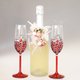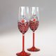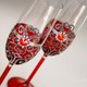 Set of 2 hand painted and decorated champagne wine glasses.The glass surface is dyed in a beautiful red color. Charming retro style outlook. Swirls in lead gray on the top part, with extremely attractive reflex effect / iced look. Beautiful roundel with big red shining crystal in the middle.