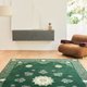这款地毯以深绿色为底色,精心绘制出层次丰富的花卉图案,中心大花与周围小花、卷草纹相互映衬,精致典雅,尽显复古浪漫风情。融合传统设计与现代审美,每一处图案都经精心绘制、巧妙排布。它由技艺嫺熟的地毯工匠倾力打造,为家居增添自然雅致的艺术氛围。
