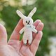 兔子的身高约为7厘米/2.7英寸,不带耳朵,9厘米/3.5英寸,带耳朵。白兔胸针由白色亚麻布制成。