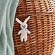 这枚兔子形状的胸针是手工绣制的,很有爱。一个针状胸针从后面连接在上面,这个宝贝完全可以交给你。这枚胸针是单件制作的。