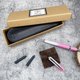 礼盒组赠送一组刻字在钢笔笔盖上(右撇子为笔夹右侧,若左撇子请告知,可改为笔夹左侧),若需额外增加刻字,一个位置一组字为180元(最多20个字,若需更多字可私讯讨论),详情请见以下链接:www.pinkoi.com/product/cYrUBSrX