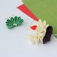 The silk fabric for kimono is cut into small squares, folded and made seasonal flowers and animals.
