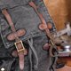 采用加厚帆布配植鞣牛皮,纯铜五金配件。工艺相当复杂,手工染色,重度洗水,沙池摩擦作旧,高温烘烤后再洗水。要的就是历经风雨,战火洗礼的感觉。