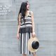 与上衣的横条纹不同的是,裤子特意做成竖条纹的形式,更显瘦。