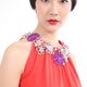 无袖罗缎连衣裙,领口有中式绳结花钮 - 黑色/ 橙色 主料:95%聚酯纤维5%氨纶 衬里:95%涤纶,5%氨纶 结:100%聚酯纤维