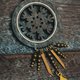 材质采木板镶嵌黄铜搭配手编蜡线与各式珠子,营造出古老传说的朴质氛围。