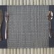 - Package includes: 2 pieces of Black grey placemat Materials utilise: Sedge Size/Dimensions: W 45 cm x H 30 cm (may vary by1-2cm) Weight Estimate: 0.5 Kg per set Maintenance: It can be wash but keep in mind that it always need to be dry Wipe with wet cloth and keep it dry under shady area. Remark: Please note that every piece is carefully made by hand.