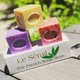 席尔马赛皂因为为全程手作,外观为不规则正方形,六面钢印也不会完全平整。