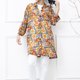黄橘大花满版印花图样长版上衣 / 深绿色 透气舒适,春夏皆宜