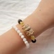 每一颗珠子皆由职人手工精挑,搭配金色点缀,整体配色高雅柔和。