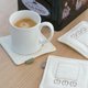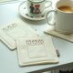 • 软奶油杯垫 • 尺寸:105 x 105 毫米 • 颜色:奶油色、象牙色棉、棕线