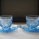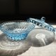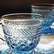 湛蓝透亮的刻花玻璃杯盘,出自Indonesia的玻璃厂牌“Pasari”。