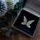 Panetta制作精良的首饰总是令人眼前一亮。今天的扭丝金边银蝶在镀铑的蝶身上以密镶法镶满透亮莱茵石,镂空雕花描绘出蝴蝶蜿蜒的翅纹,加上令人惊喜的金边装饰,显得贵气十足。