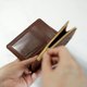 精心挑选进口皮料,根据款式和钱包部位,削薄到适合厚度,避开瑕疵,人工裁皮下料。✔