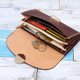 - 这款的原型是店里另一个款风琴包,但是用的是菊花钉装饰的四合扣,再一次客人的定制中,我们采纳了客人的建议用了亮金色的插扣,仅仅只是换了一个扣件,整个风格就完全不一样了,从原来复古可爱变成了简约时尚,所以说是客户缔造了这款新的风琴包。