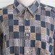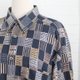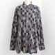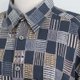 复古90s宽松个性几何印花oversize中性长袖深蓝色格纹棉质古着衬衫-T618
