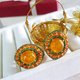 Yellow Sapphire earrings, vintage design, surrounded by small yellow Sapphire and green garnet Brighten up the antique design for you to enjoy dressing up. Enhancing charm and sweetness to make your every day a special one.