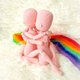 他们可以被赋予不同的身体位置。 要固定各种姿势,最好使用销钉。 娃娃的脖子上有一根电线,所以它们可以弯曲。 娃娃的头可以转动,它被删除。 如果你愿意,你可以自己设计一个娃娃的身体-做一张脸和头发。 这将是有趣的))娃娃的所有部分都是安全固定的,但你需要小心处理它们。 不要让小孩子玩。 该套装包括两个娃娃身体和一个彩虹偷走。 产品的颜色可能会因不同的显示器设置而有所不同。