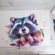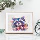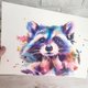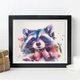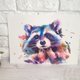 在 100% 棉纸上绘制彩色浣熊水彩画。明亮正面的浣熊画会给人一种好心情。丰富多彩的艺术将装饰室内,增添创意。送给孩子托儿所的美妙礼物。每个人都买得起这样的动物。他将成为您每天寻找幸福的忠实朋友!