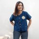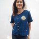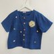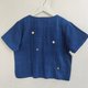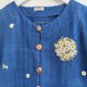 圆领短袖,前上衣搭配柚木扣环。左胸上有出色的手工刺绣白花花束,短衬衫上布满了小白花。天然染色靛蓝,剪裁精美的休闲女用短上衣,可搭配任何牛仔裤、裤子或裙子。正面和背面都有手工刺绣之一。