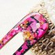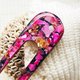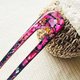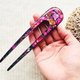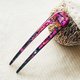 红色的发簪,缀以珍珠母贝、环氧树脂,背面为木质。 叉针长度 - 140 毫米
