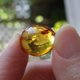 此颗琥珀是属缅甸金珀,颜色为金橘色,质地晶莹剔透,没有什么杂质,是很不错的一颗虫珀。主要内包体是1只远古双翅目昆虫及植物,此昆虫保存相当完整,两对翅膀及三对足非常明显分辨出来!
