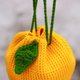 清早起床去菜市场,发现新鲜的水果非常吸引,一颗颗柚子摆得整齐有序。灵感一动,回到工作室立即拿出黄色和绿色的毛线,开始动手用毛线来“种”柚子。