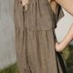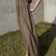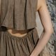 露出部分肩膀,领口一圈褶量和散口边设计,增加裙子的自然感;后背镂空收褶设计,在温柔里增加一些层次设计:高级也冷淡的岩石灰,一种历久弥新的美,依旧是松弛里保有女性气息