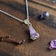 No.10 尺寸:高2厘米〈含坠头〉、宽0.7厘米 材料:925银、紫水晶 作品尺寸皆为手工测量会有些许误差值。 照片色泽与实体物件有所误差,作品物件以实体为主。