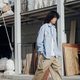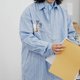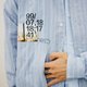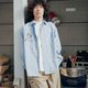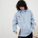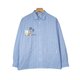 - 浅蓝色条纹长袖衬衫 双口袋宽松休闲日系潮流