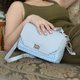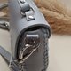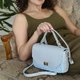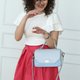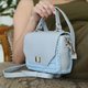 - The handbag is blue colour and grey colour leather. The bag`s hardware colour is silver nickel. There is a lining and a pocket with a zipper. dimensions(cm) - 15*23*7 belt(cm) - 115-127 materials - cotton, genuine leather. If you have any questions or are not satisfied with the item you received, please contact us.