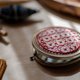 日本绣线,棉麻布料,压花金色按压式随身镜(二边镜)