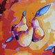 * 标题: 三个梨。厨房绘画。农场艺术。