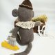 毛绒动物针织猴子与香蕉复古风格,玩具作为礼物