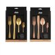 时尚的餐具设计,共有二种色系可供选择:香槟金/玫瑰金。不锈钢材质,表面涂有耐用的 PVD 涂层,16件组包含刀/叉/汤匙/小汤匙各4件。