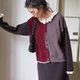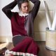 面料柔軟舒適,輕便又保暖。顏色精選,大色塊低飽和度車釐子紅拼榛子棕巧色,不對稱切面分割設計,與眾不同。