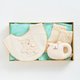 A 3-piece set with a cute dog character, mini tie, rattle, and crew socks.