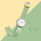 拉丝质感表壳,搭配极简刻度设计,可爱风格牛油果色表带,36/40MM两个表盘尺寸可供选择。