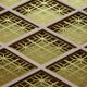A gold-colored paper was laser-cut and a kumiko pattern was inserted into a diamond shape combining thin wood. If you look closer, you can enjoy a thin pattern and deep gold.