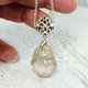天然淡黄细丝钛晶 镂空银花球 双面可戴 925银饰坠链