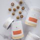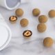 选用高品质的榛子,用焦糖包裹外层使其香甜松脆。 然后在焦糖榛子上,反复地上涂上焙茶牛奶朱古力,形成厚厚的朱古力层。 最后在焙茶牛奶朱古力焦糖榛子外层,撒上日本茶公司 - 丸久小山园焙茶。