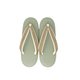 我们将带有开心果绿色的鞋底,搭配以亚麻织物制成的鼻绪,