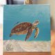 热带的小岛,白色的沙, 绿松的海,彩色的珊瑚, 自在的海龟。 看着、游着,从陆地到海洋, 不知过了多久,忘了时间与空间, 只记得你和我。 在那一个的宁静片刻,因为你, 我的灵魂跟着飞翔。 尺寸:20x20 cm 媒材:画布、压克力颜料 **所有电脑和手机的显示颜色都不相同,画作可能与您在屏屏幕上看到的图像颜色略有不同。**