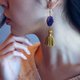 Multi-faceted Amethyst gemstones are set against dark mustard tassels to create these enchanting Arabella earrings. An unusual and rare colour combination that is made even more alluring with these opalescent purple gemstones.