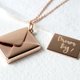 一个可以打开的玫瑰金纯银小信封及可刻上亲笔字的信