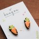 木质耳环 红萝卜 此为手工制作的柚木饰品,以红萝卜图案设计。 材质:柚木 色彩涂料:压克力颜料手绘 可接触水分,不易发霉 尺寸:高 1.5 x 宽 0.8 厘米 https://live.staticflickr.com/65535/51815945446_5840fe95f9_o.jpg **可选择耳针或耳夹。订购时请注明您的需求。** *· 设计:泰国* *· 产地:泰国*