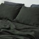 - • Includes 1 linen flat sheet (+2 pillowcases optional) in Charcoal green color • No additional seams in the middle • Made from 100% European flax • Stone washed for maximum softness (medium weight) • OEKO-TEX certified fabric (free of harmful chemicals) • No ironing needed